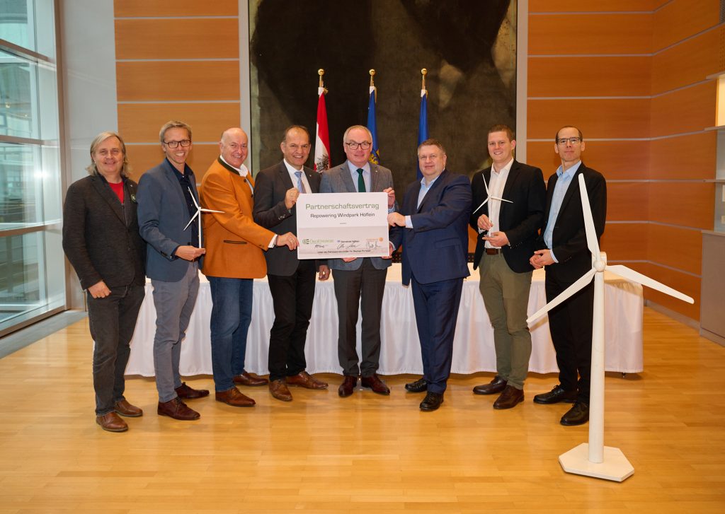 Weniger Windräder, dafür mehr Leistung: Gemeinde Höflein unterzeichnet im Beisein von LHStv. Stephan Pernkopf einen Partnerschaftsvertrag für Repowering mit ÖKOENERGIE aus Wolkersdorf und Energiepark Bruck/Leitha.