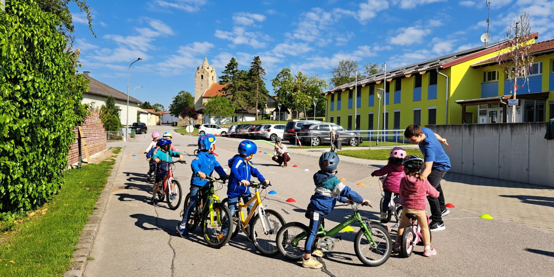 At the Scharndorf kindergarten today, everything revolved around two wheels, helmets and road safety: an exciting bicycle workshop transformed the grounds – including a closed-off road – into a real training ground for young and old cycling pros.