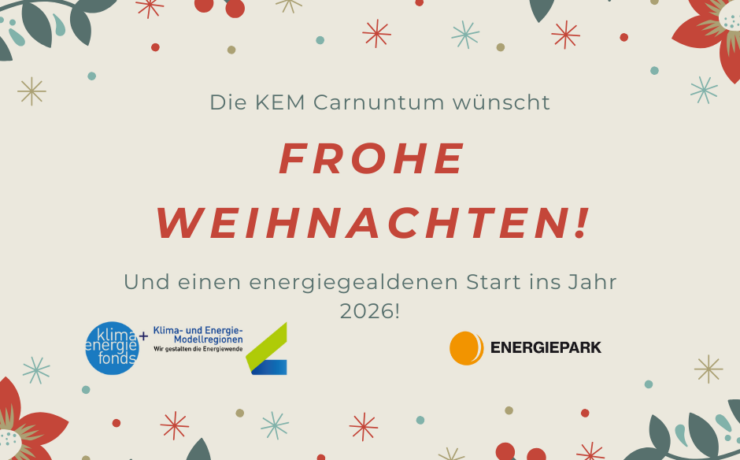 KEM Carnuntum wishes you happy holidays and a good start to the new year! Thank you for an eventful year and the realization of many great projects! From 07.01.2026, we will resume work in the region with full energy. The campaign was supported by Energieberatung