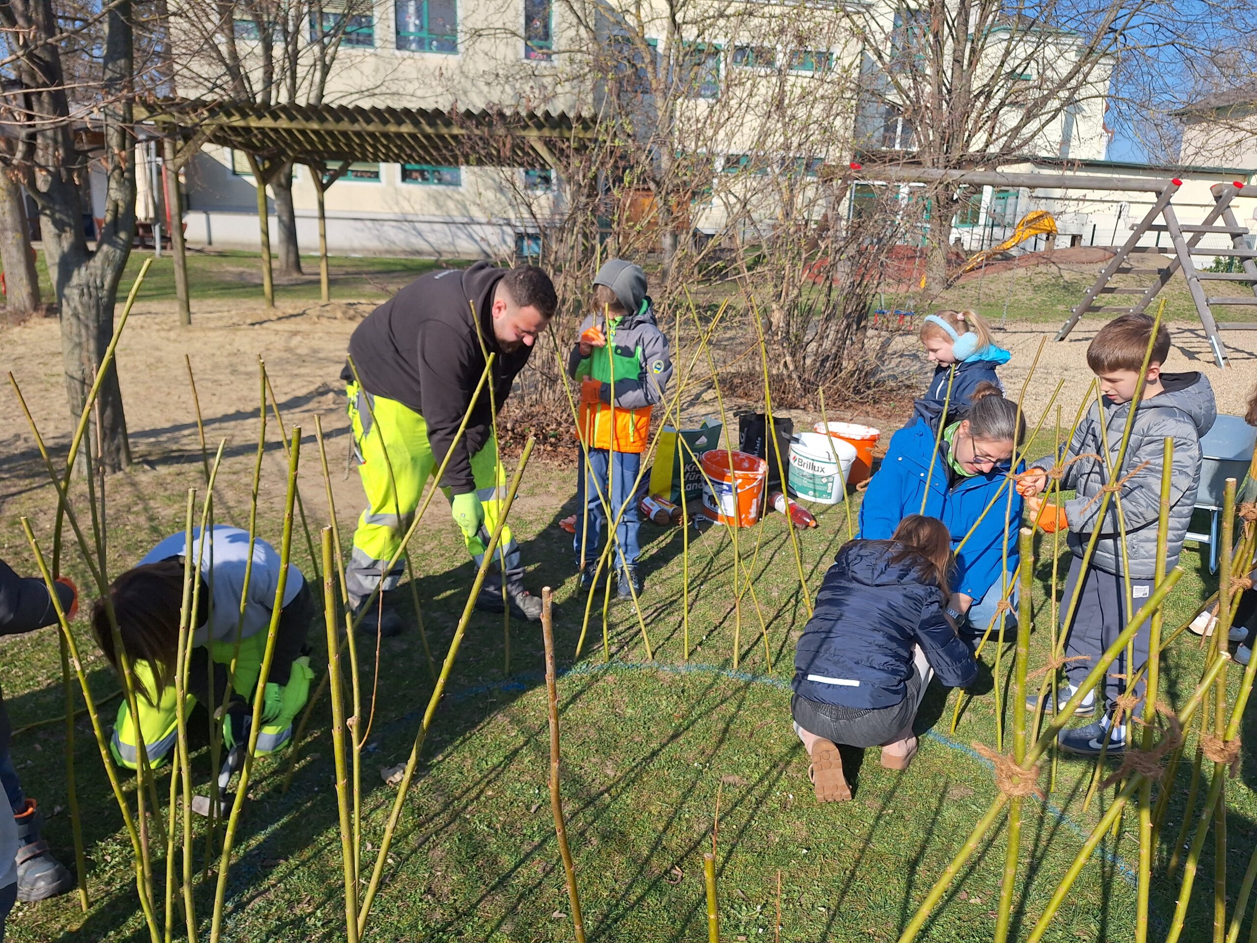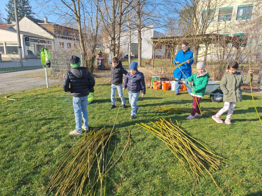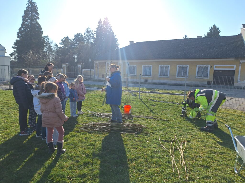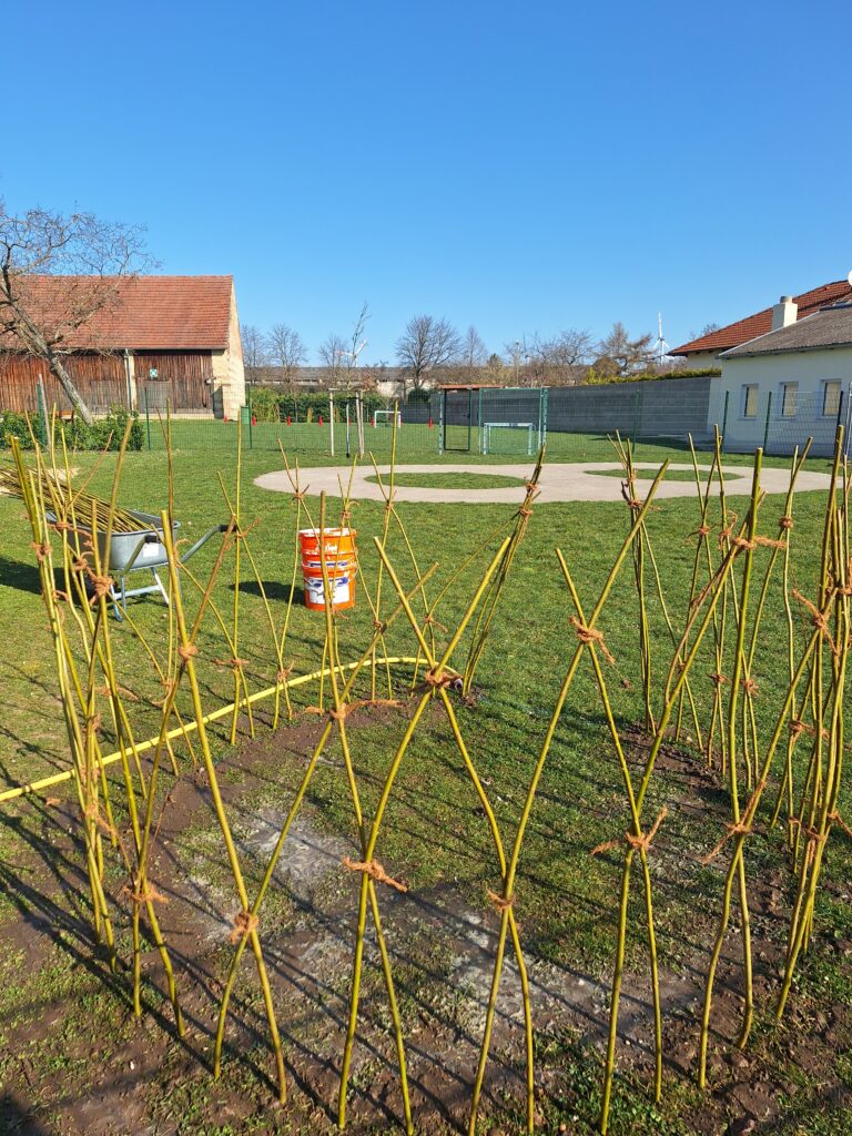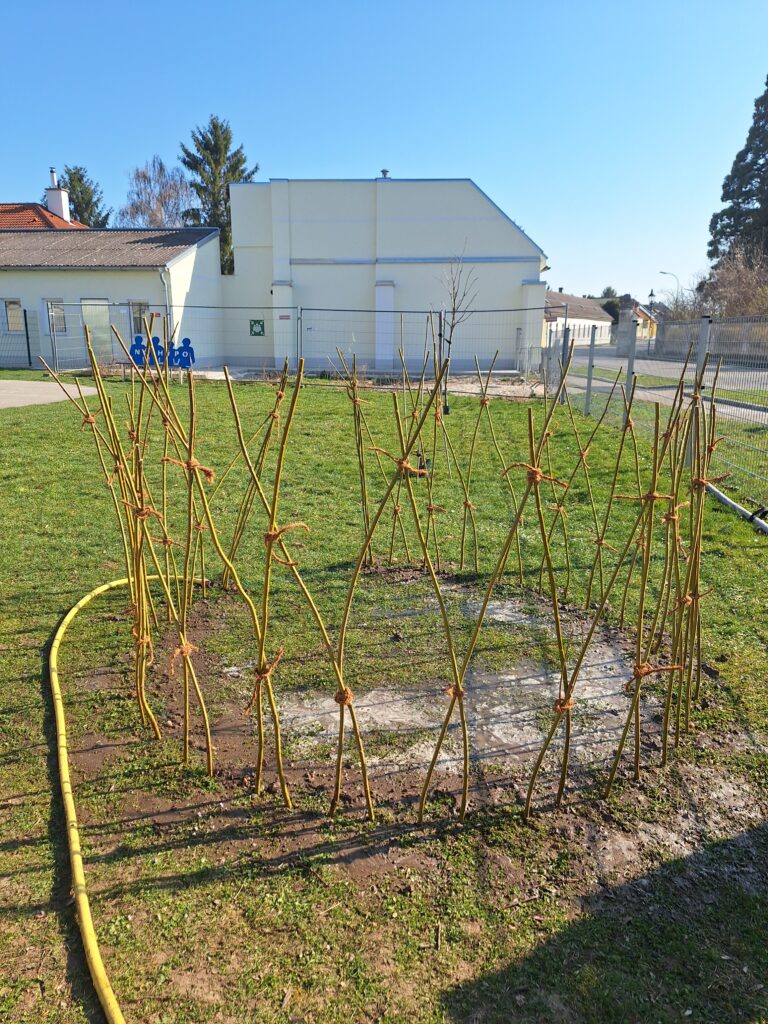The first willow tepees were planted in the gardens of the elementary school, kindergarten and after-school care center in Trautmannsdorf and the elementary school in Götzendorf in mid-March. Numerous young and old helpers were enthusiastically involved and made the planting a special experience for everyone involved.