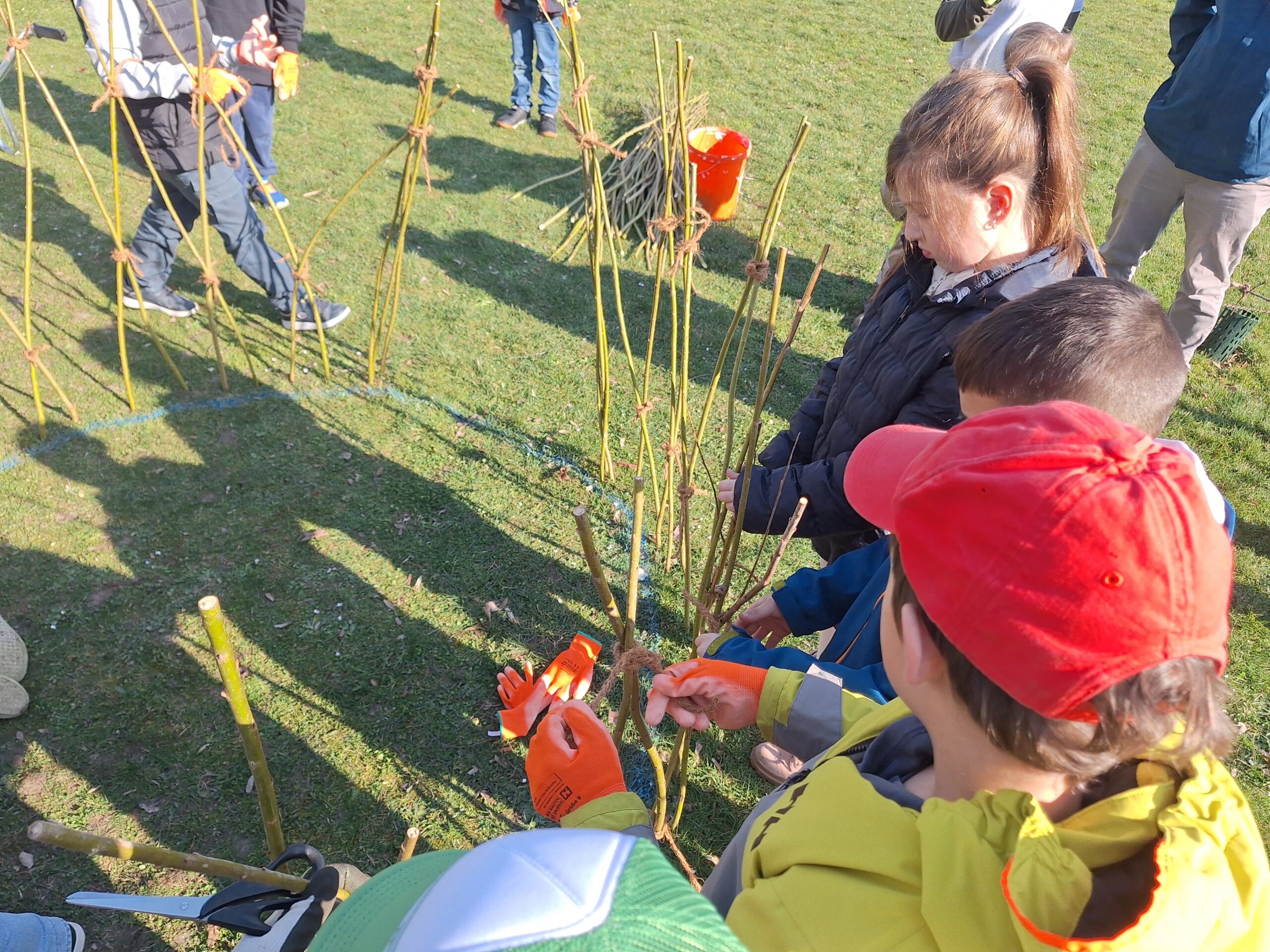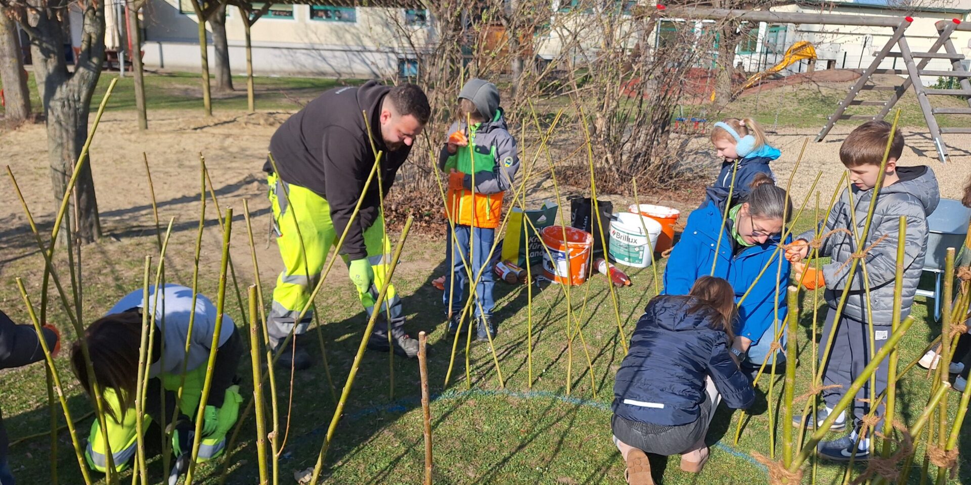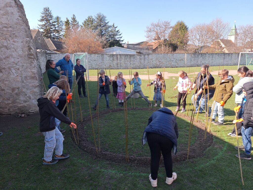 The first willow tepees were planted in the gardens of the elementary school, kindergarten and after-school care center in Trautmannsdorf and the elementary school in Götzendorf in mid-March. Numerous young and old helpers were enthusiastically involved and made the planting a special experience for everyone involved.