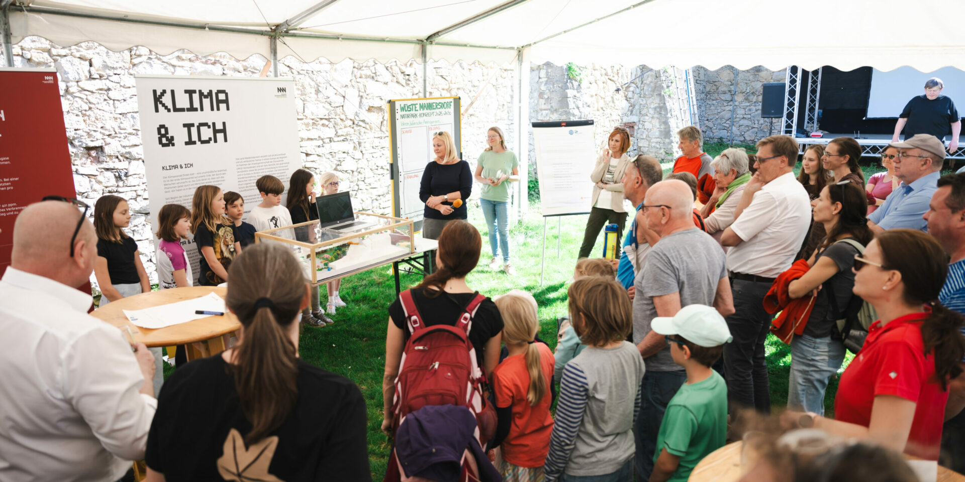 Nach diesem Highlight wurde die Ausstellung ‚Klima & Ich‘ der Energie- und Umweltagentur NÖ eröffnet, die nun die nächsten Wochen im Kloster ausgestellt ist. Das Kloster hat jeweils am Sonntag geöffnet. Im Fokus des KLAR! Treffs standen auch die Information und der Austausch zur KLAR! Region, zu Maßnahmen im Konzept. In einem kurzen Vortrag wurde darauf geschaut, was im Zuge der Konzeptionsphase schon los gewesen ist und wie es weitergeht. Zu den einzelnen Maßnahmen konnten dann in offenen Gesprächsrunden Inputs gegeben, Informationen eingeholt werden. Begleitend gab es für die jungen BesucherInnen des ersten KLAR! Treffs ein wertvolles Waldpädagogikprogramm.